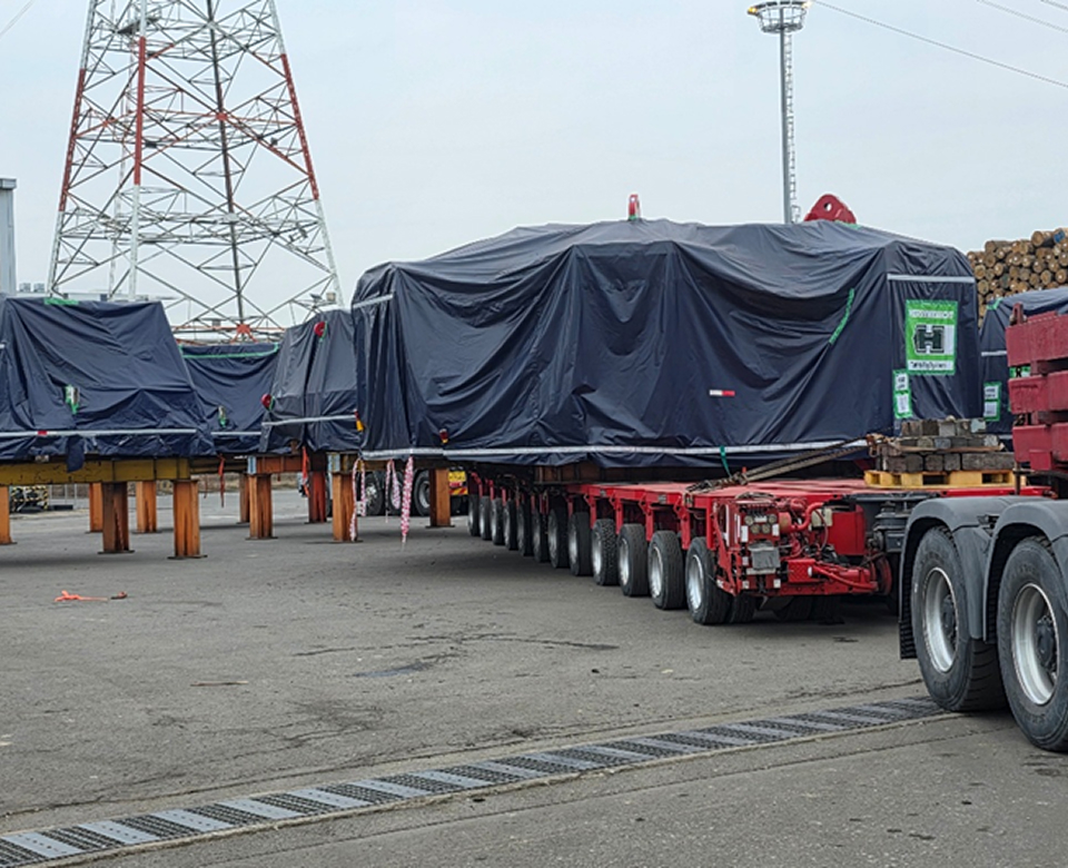 - • Heavy cargo transport using special equipment (Multi-Axle, Barge)